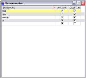 Aktivieren Sie das Feld Druck (J/N), wenn Sie den Namenszusatz im Adressfeld mit andrucken wollen.